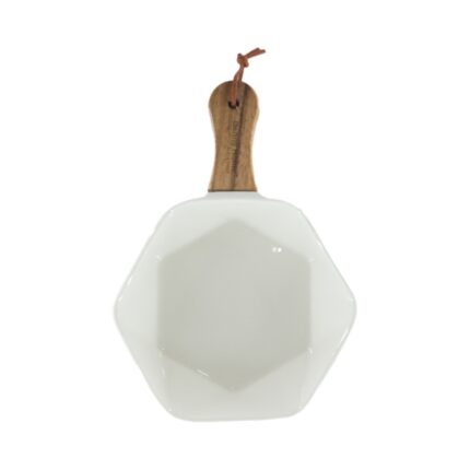 SERVING PORCELAIN DISH WITH WOODEN HANDLE