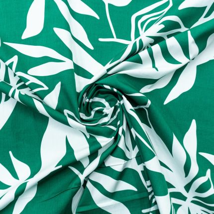 Printed Cotton Poplin- Cream/green