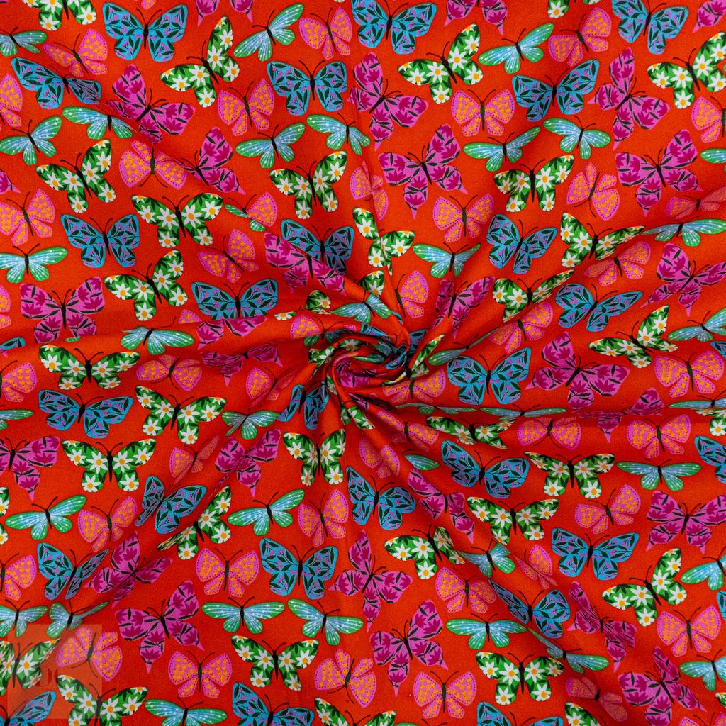 115CM PRINTED POLY COTTON BUTTERFLIES ORANGE