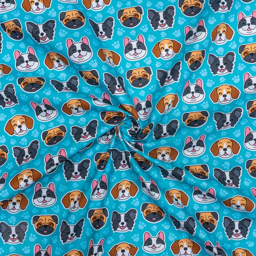 115CM PRINTED POLY COTTON DOG FACE TURQ