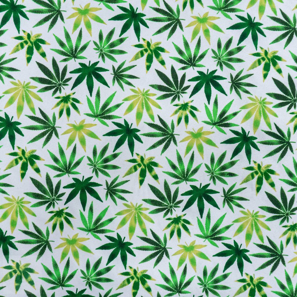115CM PRINTED POLY COTTON LEAVES WHITE