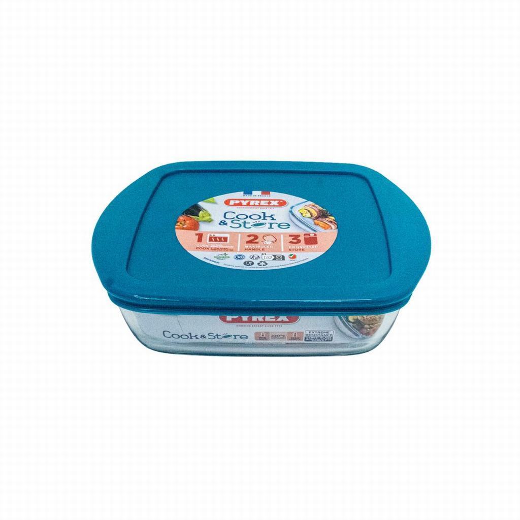 PYREX COOK & STORE DISG SQR W/ PLASTIC LID 1LT